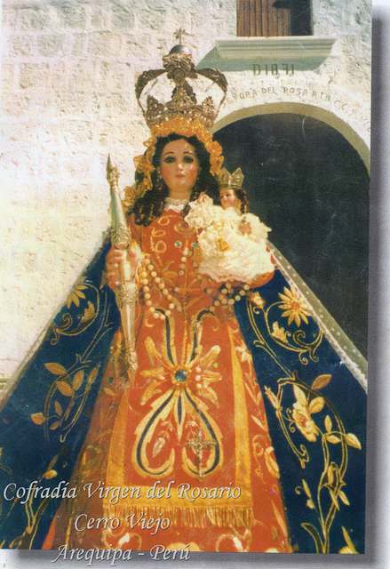 Que es el de la víspera del Santo, sus devotos hacen algo especial para "esperar las doce". Por ejemplo, los vecinos de Cerro Viejo acostumbran esa noche (6 de octubre) darle una serenata a la virgen del Rosario, que tanto halagan. Con las puertas cerradas de su capilla y reunidos en el atrio, le cantan a la virgen, con el acompañamiento de guitarras, mientras avanza el ensordecedor ruido de los "cuetes" de una extensa Troya que ponen entre la plaza las américas de la libertad y la capilla . Abiertas las puertas de la capilla, entran y entre valses , yaravíes , marineras y pampeñas , además de vivas y hurras a la Virgen , pasan varias horas.